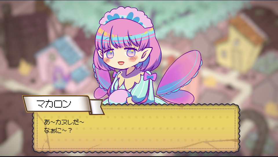 無口の女の子[ロゼット]は愉快な異形頭の[シャルノア]にドリンクを作ってあげます。